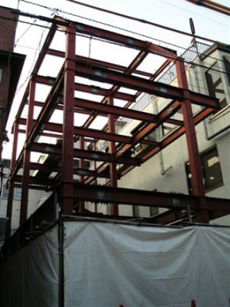 町内会館を鉄骨3階建てに建て直しました。斜線によるセットバック(柱折れ)がありました。