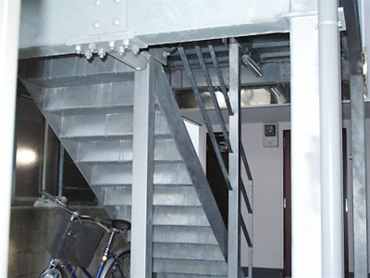 外部階段の為、防錆には、溶融亜鉛メッキが施されております。