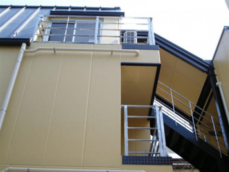 全て同サイズのフラットバーにて横桟5段のシンプルな手摺です。バルコニーも同じ仕様になってます。防錆処理は溶融亜鉛メッキです。