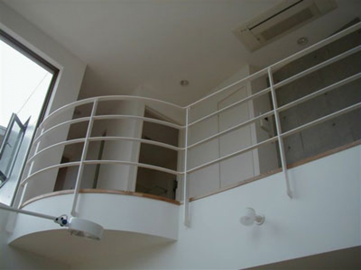 一部アールになっている吹抜け部の手摺をフラットバーにて製作し、取付けました。