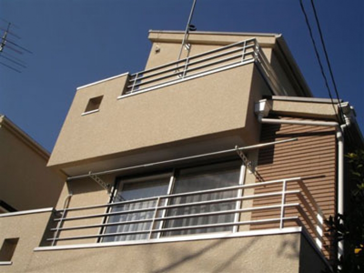 木造住宅のバルコニーにフラットバー横桟タイプの手摺を取付けました。画像では判り難いですが、塗装仕上げと亜鉛メッキ仕上げがあります。