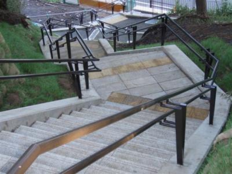 公園の園路や階段、スロープなどにステンレス製の手摺を設置しました。