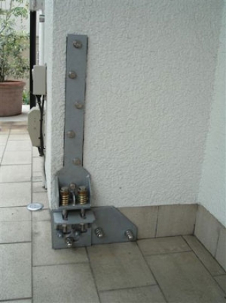木造の建物と基礎の部分とをダンパー付きの金物で固定させます。防錆にも亜鉛メッキを使用しています。