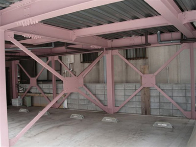 1階が駐車場になっているピロティー式の建物にチャンネルブレースを取付けました。