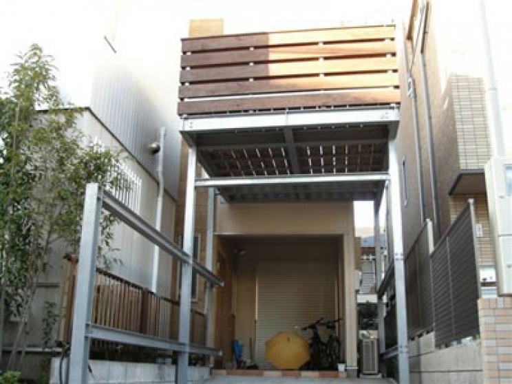 1階の車庫の上を有効利用の為、バルコニーを設置。溶融亜鉛メッキ処理。
